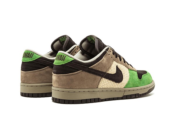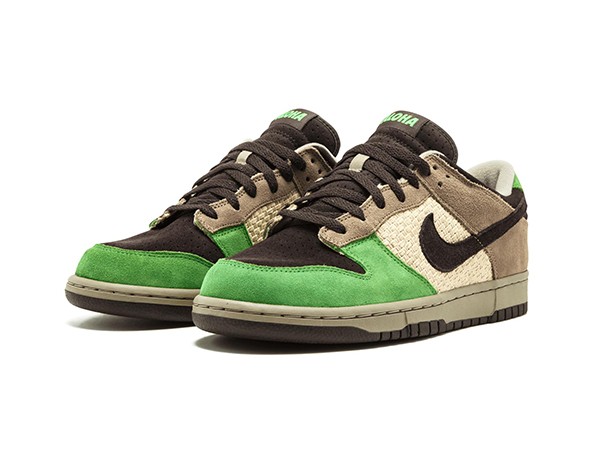Details: The counterfeit Nike Dunk Low KicksHawaii "Aloha" features a woven Lauhala bamboo quarter panel alongside Mean Green, Baroque Brown and khaki nubuck.