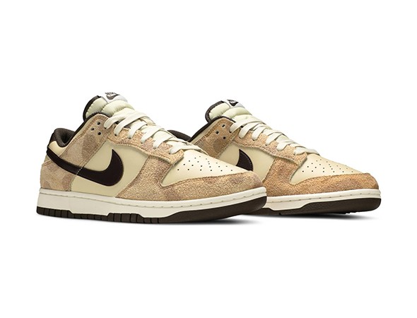 Details: Knockoffs Nike Dunk Low "Animal Pack - Giraffe" feature a leather upper with suede animal print overlays, leather Swooshes and heels atop a White midsole.