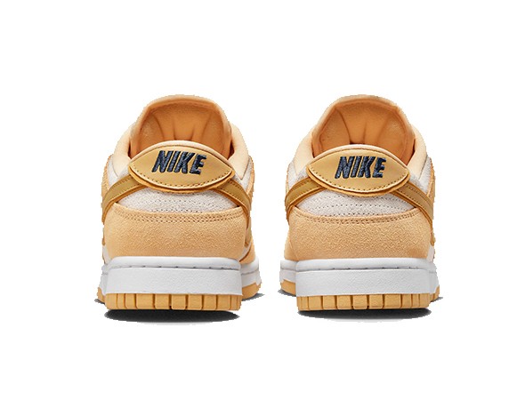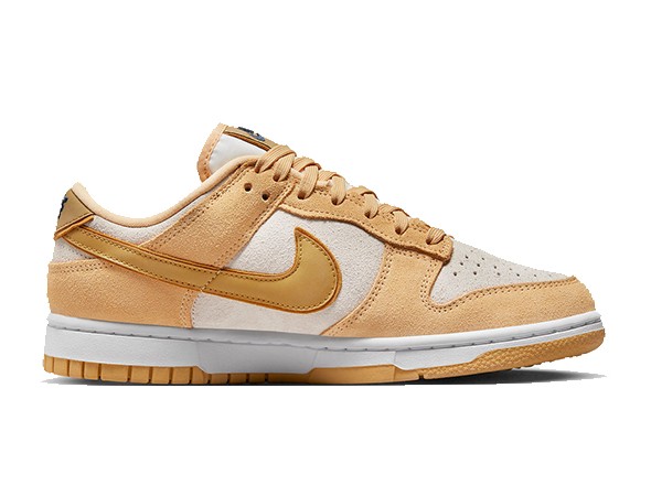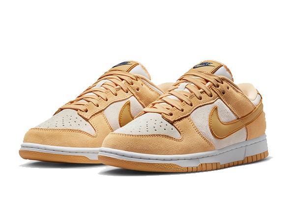 Details: Reps Nike Dunk Low "Celestial Gold Suede" is constructed of full suede. Sail base with celestial gold overlay. The classic Swoosh, tongue tab and heel tab use leather material. Besides, the tongue logo and heel logo are embellished with midnight navy blue. White midsole and celestial gold rubber outsole provide good traction.