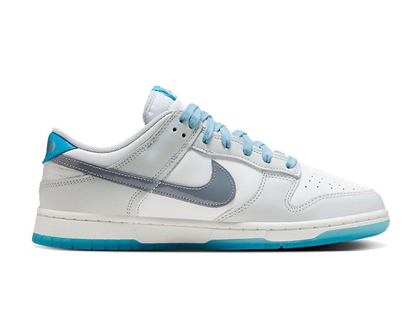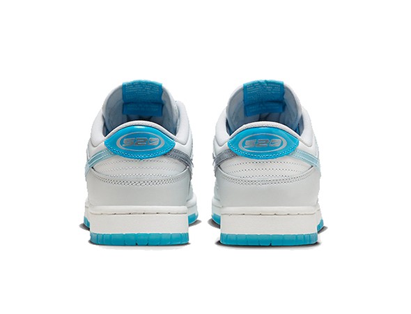 Details: Made of leather, this Fake Nike Dunk Low "520" features a white base with grey overlays. Asymmetrical designs are applied to the TPU Swooshes on the medial and lateral sides, which come in dark grey and blue respectively. Blue accents the tongue label, laces, heel tab and translucent rubber outsole. The traditional logo on the heel is swapped out for the number "520."