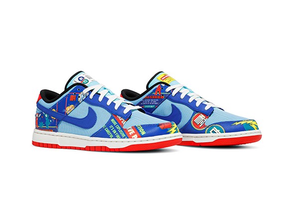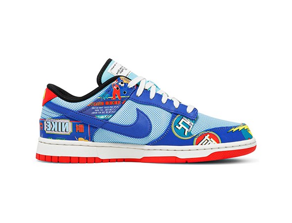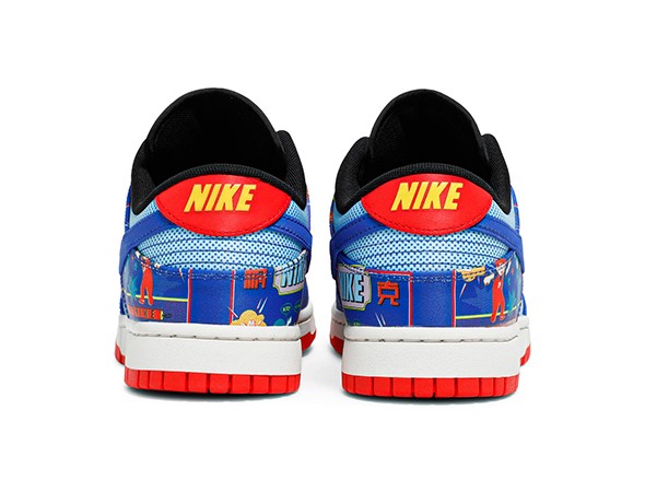Details: The Best Replica Nike Dunk Low "Chinese New Year - Firecracker" upper is composed of an abundance of loud graphics. The blue leather upper shows off words like “BANG!” and “WARNING”, mimicking similar advertising found on firecracker packaging.