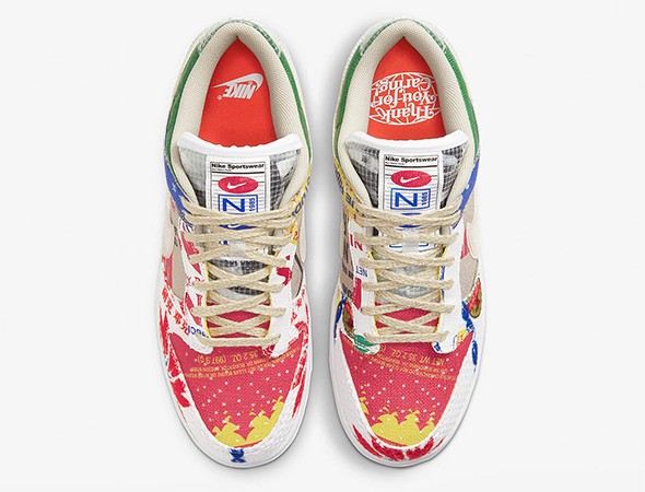 Details: This fake Nike Dunk Low SP City Market dressed in a Multi-Color color blocking. This Nike Dunk Low appears to have a connection to Nike’s Blue Ribbon Studio – that’s branded on the medial side, which is essentially an arts and crafts area filled with everything from 3D printers to laser cutters, where Nike employees can go to express themselves and tinker around.
