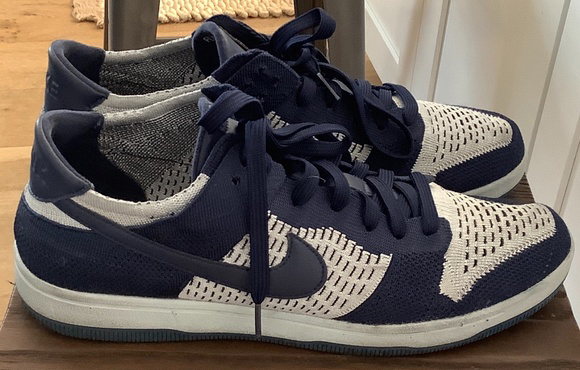 Details: The '80s icon gets a modern makeover in the copy Nike Dunk Low Flyknit "College Navy Pure Platinum" men's shoe, constructed with lightweight Flyknit fabric that wraps your foot in breathable, flexible comfort.