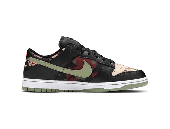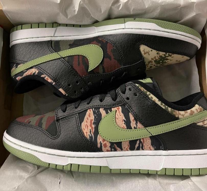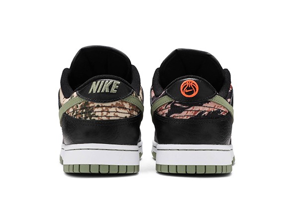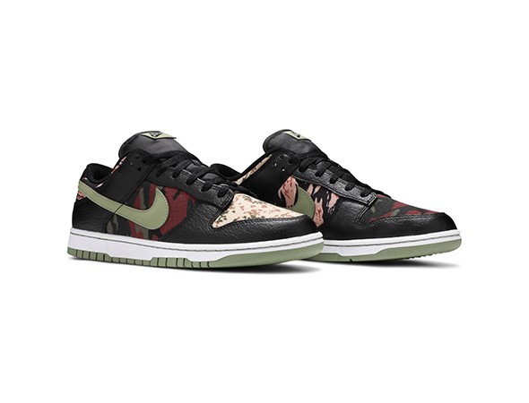Details: This cheap fake Nike Dunk Low "Crazy Camo" features multiple camo prints used as its base with Black nubuck overlays.