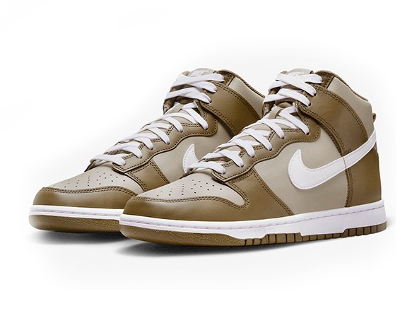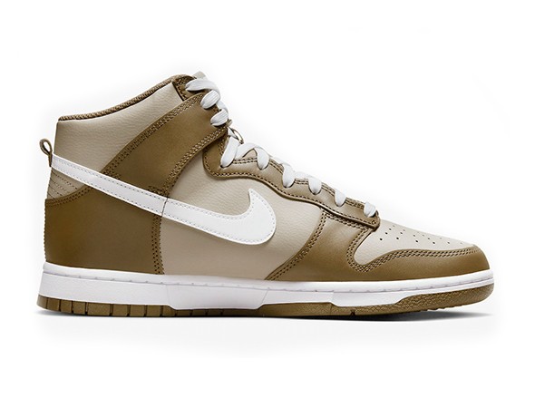 Details: This Nike Dunk High gets hit with a light tan on the base which includes the toe, side panels, and ankle/heel which is then joined by brown on the overlays, inner liner, and rubber outsole.
