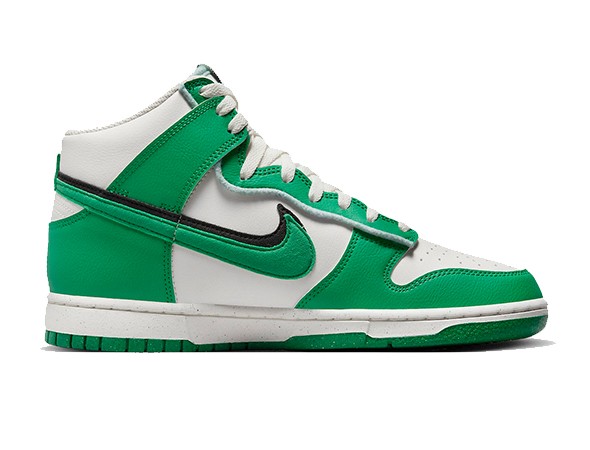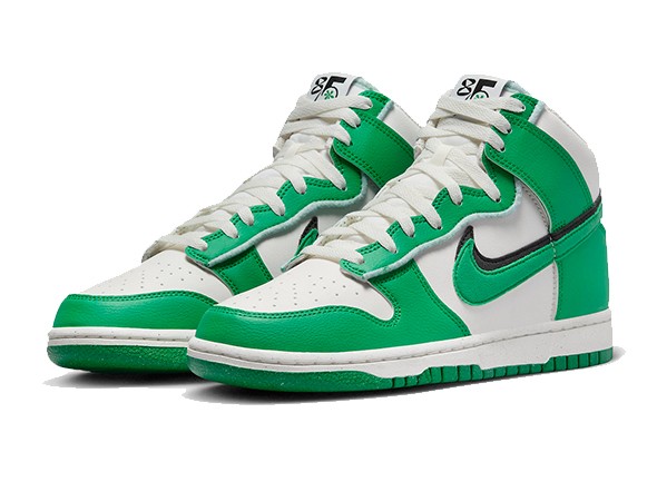 Details: This Fake Nike Dunk High is in a Phantom grey and a Stadium Green overlay with a full leather construction. The year "85" is proudly displayed atop the tongue, while a double-Swoosh treatment sees the Stadium Green check layered above black. Gentle specks appear embedded in the midsole and outsole for a grainy look.
