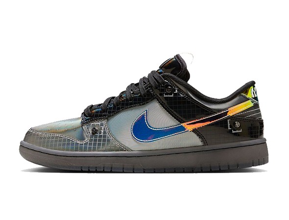 Details: Fake Nike Dunk Low “Hyperflat” features a blend of nostalgia with a hint of retro-robotic aesthetics, with its gunmetal hue leather and black collar construction. Adding to its virtual reality design, The Swoosh and heel tab, in particular, boasts a reflective gloss that adds a touch of allure.
