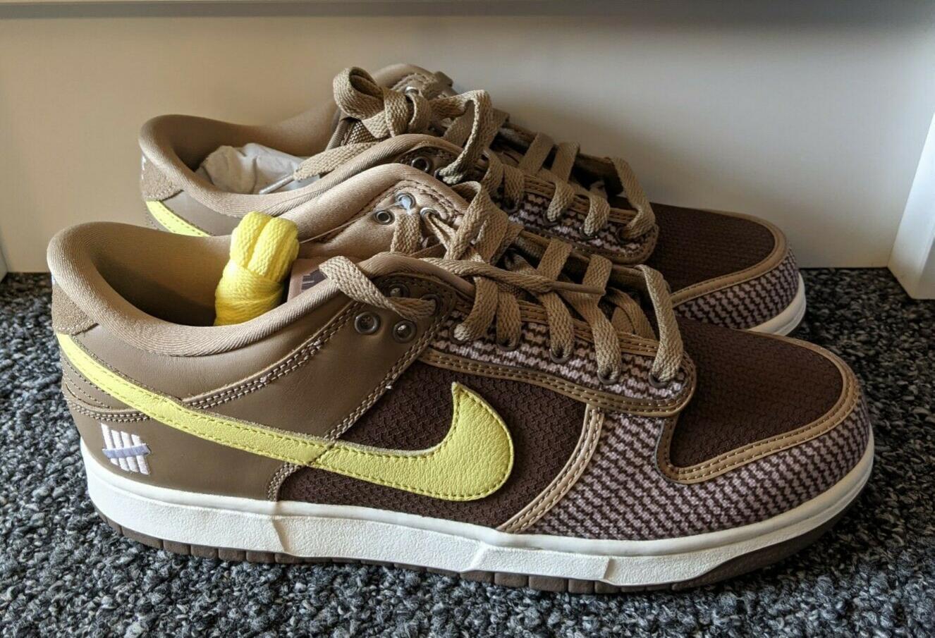 Details: Fake Undefeated x Nike Dunk Low "Dunk vs AF1" comes constructed with a houndstooth-patterned mudguard and eyestays with plain Brown textile on the quarters and toe box along with thick Brown leather piping.