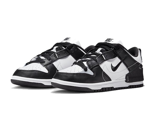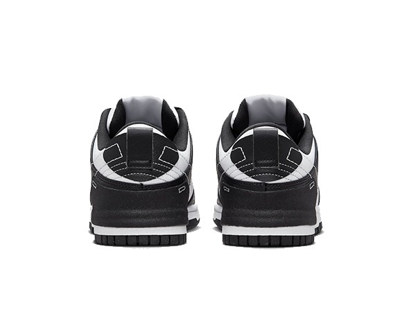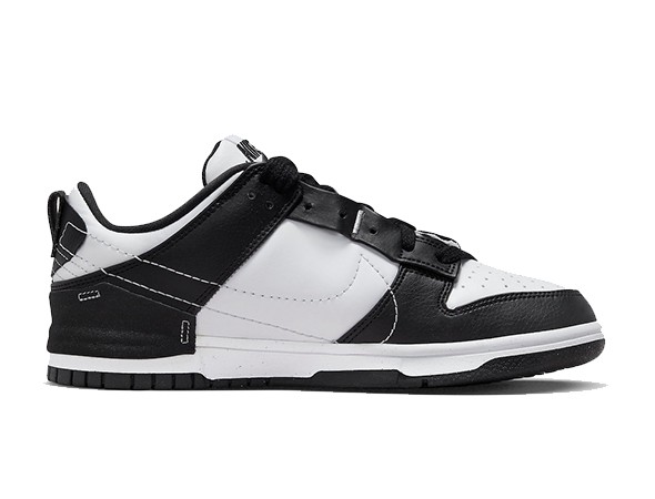 Details: Dressed in a Black, Pure Platinum, and White color scheme. This fake Nike Dunk Low Disrupt 2 features a White leather base with Black overlays to give off that Panda vibe. Stitched Swooshes, graphic insoles atop a White midsole and Black rubber outsole completes the design.