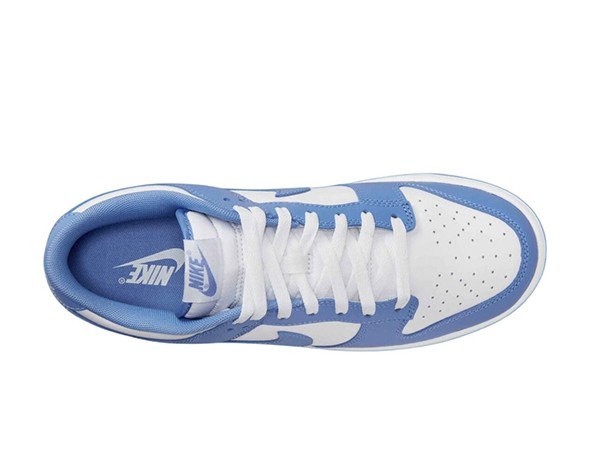 Details: Replica Nike Dunk Low "Polar Blue" features a traditional leather construction. White base with Polar Blue overlays and Swooshes. Two-tone sole matches the upper.