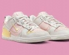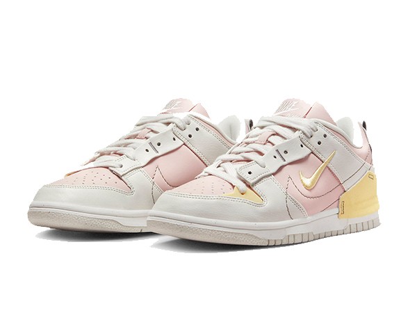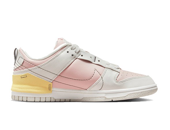 Details: This fake Nike Dunk Low Disrupt 2 is featured in another new colorway as this rendition is notably suited for the warm months. Sporting a light pink base and white leather upper, the low-top’s slightly deconstructed profile is nicely punctuated with pastel yellow adorning the toe box, heel overlay, and embroidered Swoosh on its side panels. Finally, graphic insoles and a white/sail Grind rubber outsole rounds out the design nicely.