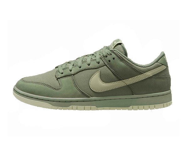 Details: Reps Nike Dunk Low Premium "Oil Green" is made of mixed materials. Canvas twill base with suede overlays. Leather is applied to the Swooshes and heel tab. The entire upper is covered in oil green, and the midsole is the same color as it. Swooshes and rubber outsole are finished in light green.