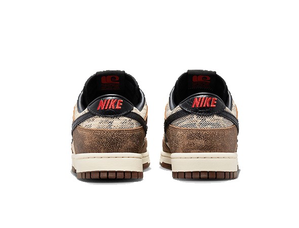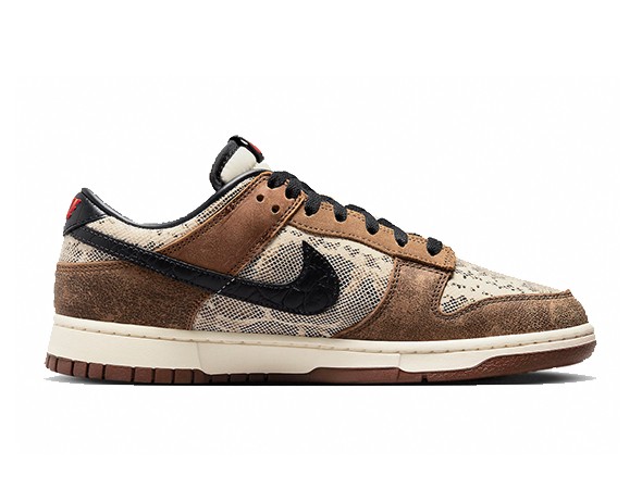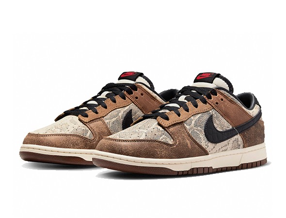 Details: Fake Nike Dunk Low Premium "CO.JP Brown Snakeskin" was inspired by the rattlesnake. The base features snakeskin patterns while overlays are made of distressed suede and scuffed leather. Swooshes on the sides come in black textured leather.