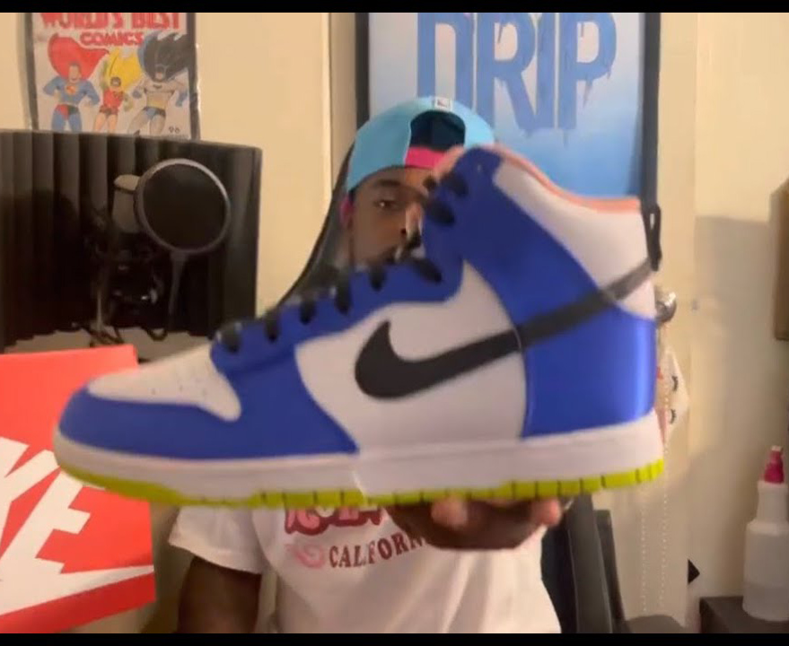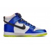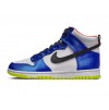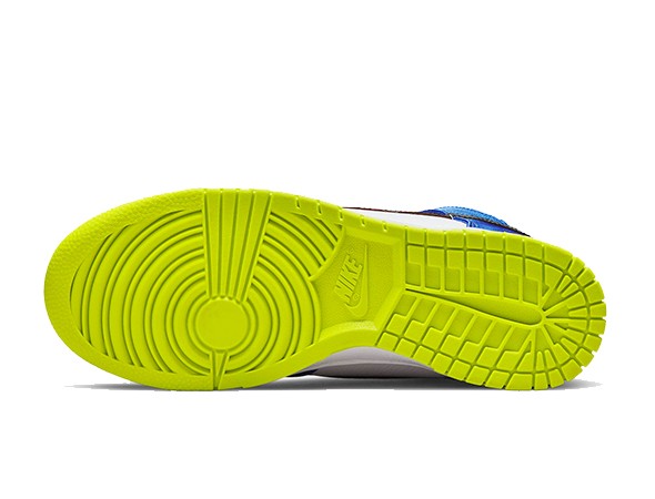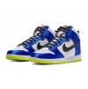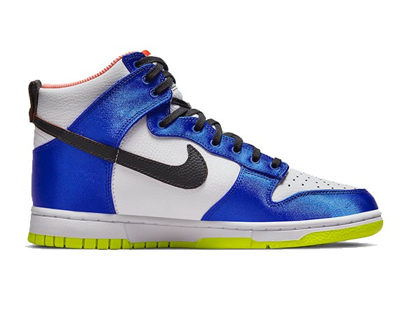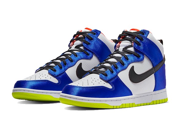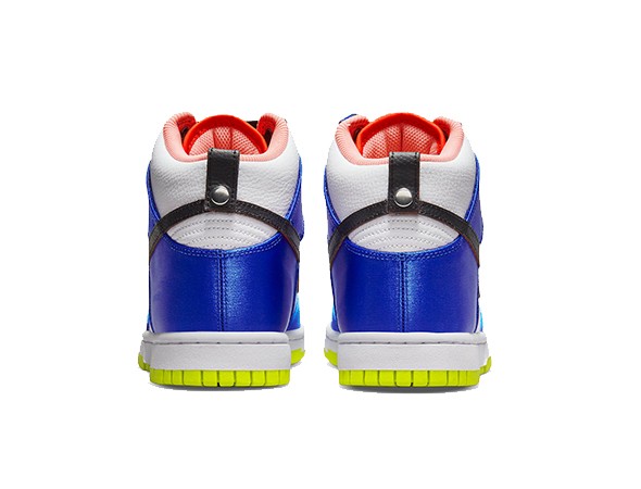 Details: This Reps Nike Dunk High features a White tumbled leather upper paired with Black basketball-textured Swooshes and press stud heel tab. Other details includes Blue satin overlays, Pink ribbed lining, athletic apparel tongue tags, atop a White midsole and Lime Green rubber outsole.