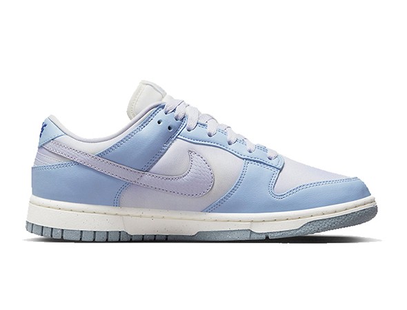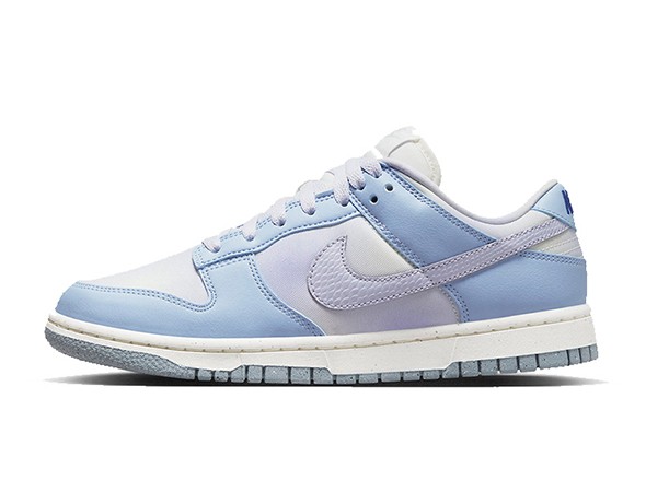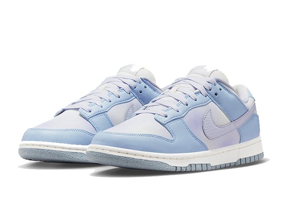 Details: Fake Nike Dunk Low "Blue Canvas" mainly uses blue and white. Constructed of canvas base with leather overlays. Textured croc-like Swooshes add accents. The speckled rubber outsole is recycled.