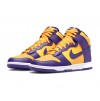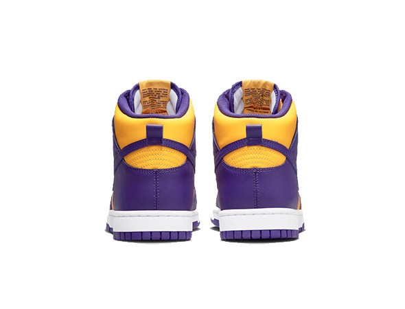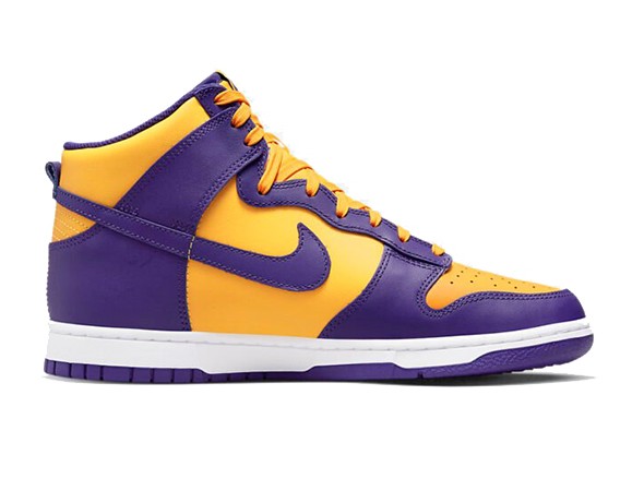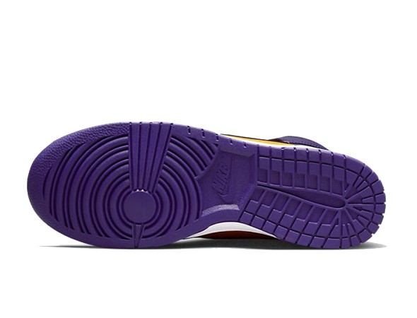 Details: This Nike Dunk features a classic all-leather upper, purple covers the overlays with gold on the underlays. Next, it highlights gold laces, tongue, tongue tag, and “Nike” branding on the insoles. Lastly, a purple liner matches the purple insoles and a purple solid rubber outsole.