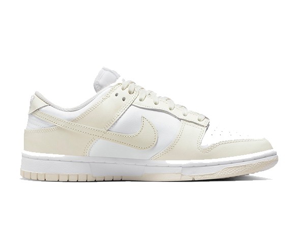 Details: This Reps Nike Dunk Low features a White leather base with Coconut Milk overlays, Swooshes, and rubber outsole. White nylon tongues, branding, and midsole completes the two-tone design.