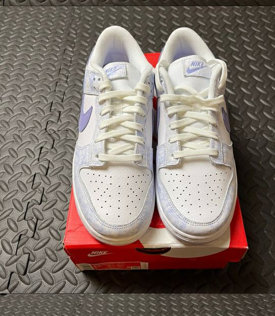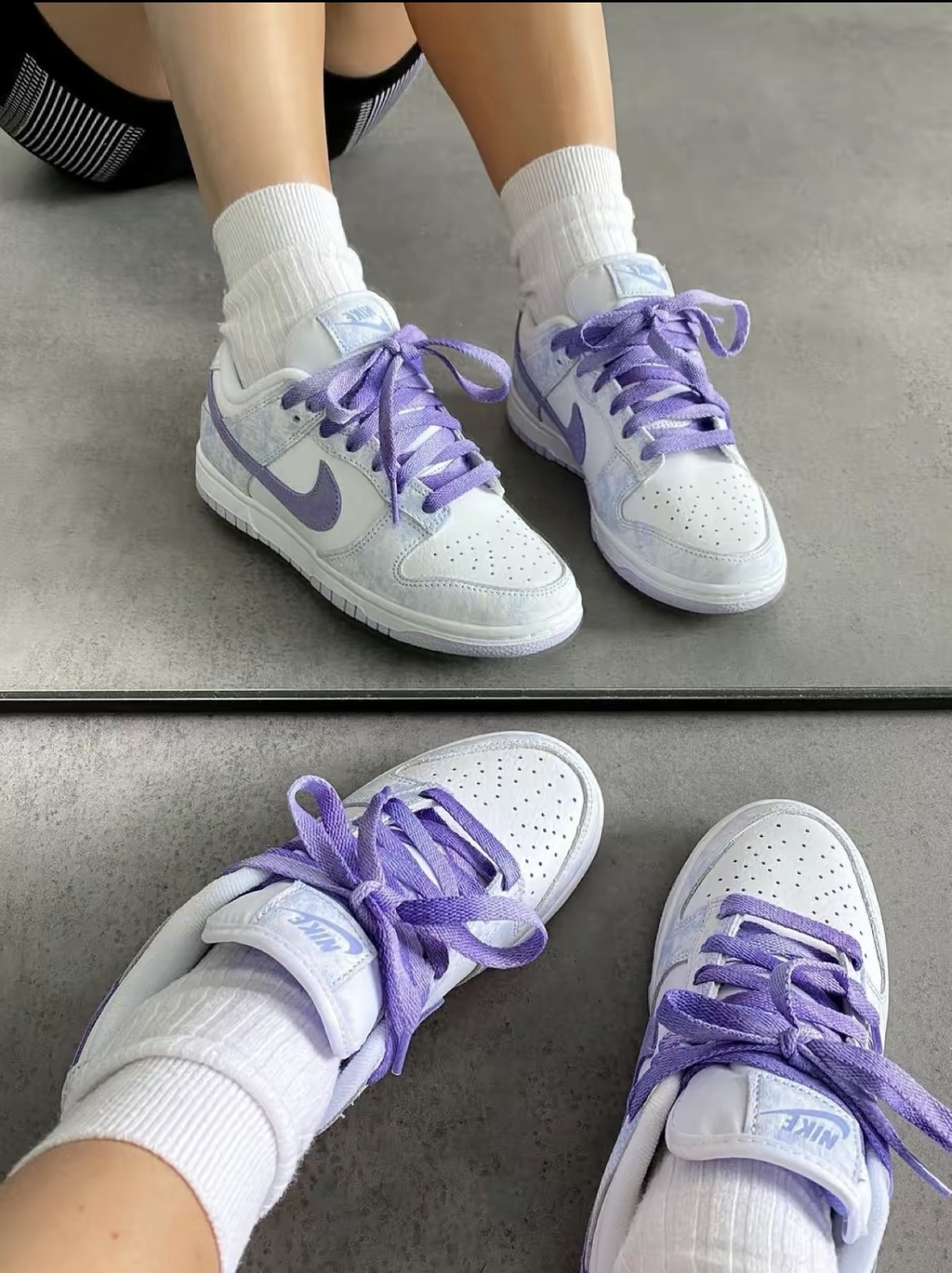 Details: This Nike Dunk arrives with less purple on the upper and a distressed or brushed color look across the toe-cap, eye stays, and rear panel.