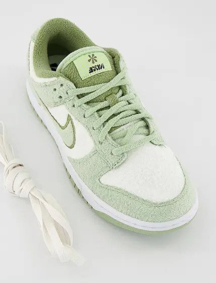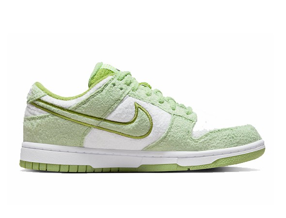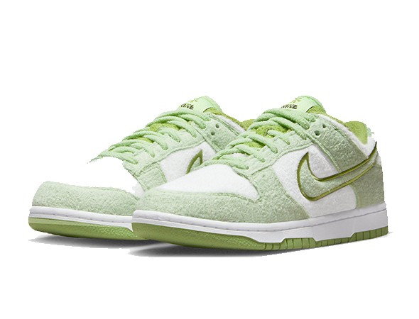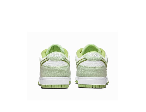 Details: This Replica Nike Dunk Low features a white base and a white midsole. The overlays, Swoosh, and laces are all mint green. Embroidery around the Swooshes and outsole use a darker green. It is worth noting that this shoe does not use the previous leather upper, but is made of fleece material, which is very suitable for cold seasons.