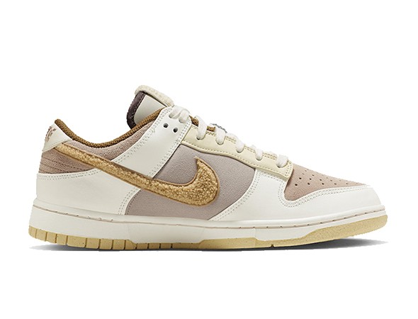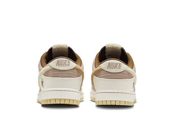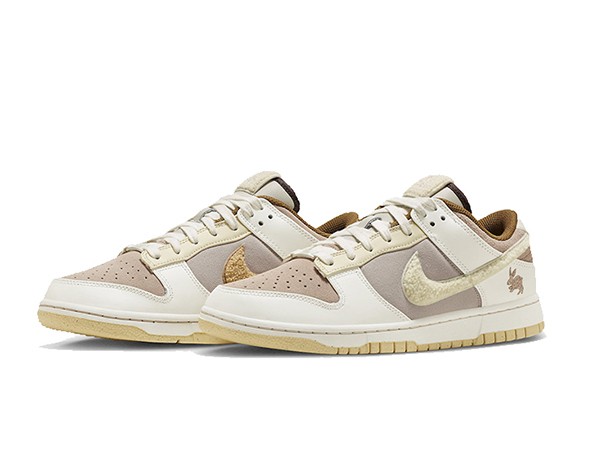 Details: A pair of shoes with the theme of the Year of the Rabbit. The upper is a combination of cream, light tan and light brown. Replica Nike Dunk Low "Year of the Rabbit Fossil Stone" uses suede, leather and chenille material. Embroidered rabbit graphics appear on the lateral heel.