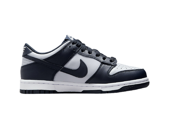 Details: This offering of the 1:1 replica Nike Dunk Low "Georgetown" features a Grey leather base with Navy overlays, laces, lining, tongue tags, heels, and rubber outsole. Orange hits are found on the branded insoles completed embroidered heels atop a White midsole.