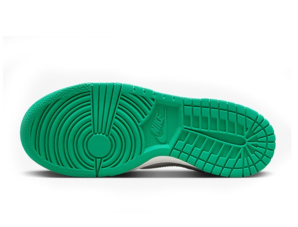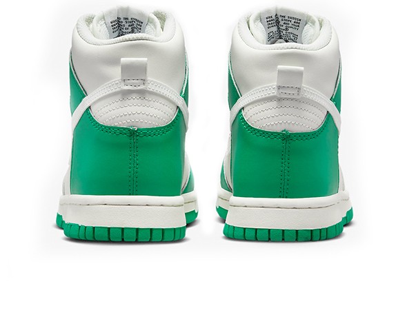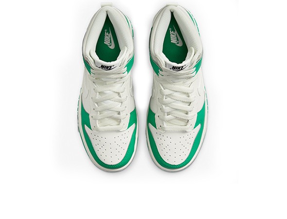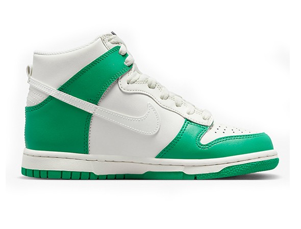 Details: This Nike Dunk constructed in a full leather build featuring a g\Green White base with grey overlays, Swooshes, and rubber outsole.