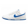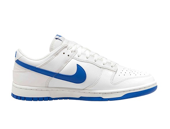 Details: UA Nike Dunk Low "Hyper Royal" is constructed of a white full leather upper with blue leather Swooshes. Blue color also appears on the tongue tab, heel tab and rubber outsole. The white midsole matches the upper.