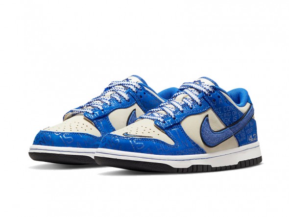 Details: This fake Nike dunk low shoes constructed in This Nike Dunk Low features a special 75th Anniversary insignia on the tongues, baseball stitched laces atop a White midsole and Black rubber sole. Besides, the insole has specific vocabulary.