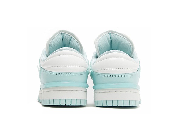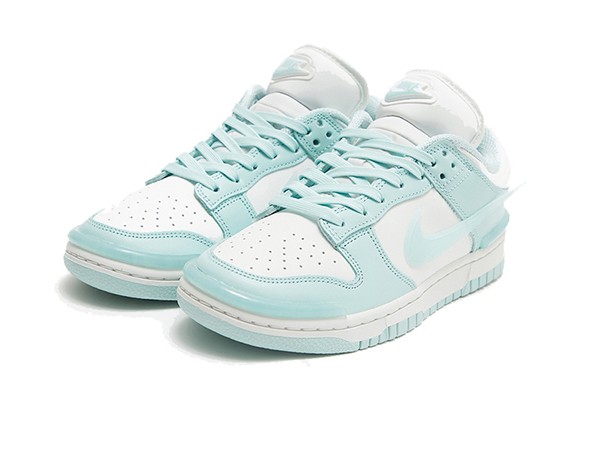 Details: Made of all-leather material, Fake Nike Dunk Low Twist "Jade Ice" uses a white base with Jade Ice overlays. It also features translucent detachable Swooshes and bumpers on the toe and heel.