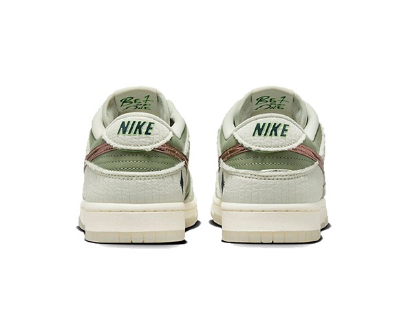 Details: Fake Kyler Murray x Nike Dunk Low “Be 1 of One” features a stylish Olive leather foundation complemented by quilted accents, lending it a fashionable allure, complete with weathered edges. Meanwhile, the inner ankle and insoles are adorned with chunky rope laces and exclusive symbols for added flair.