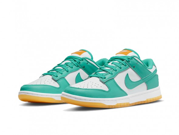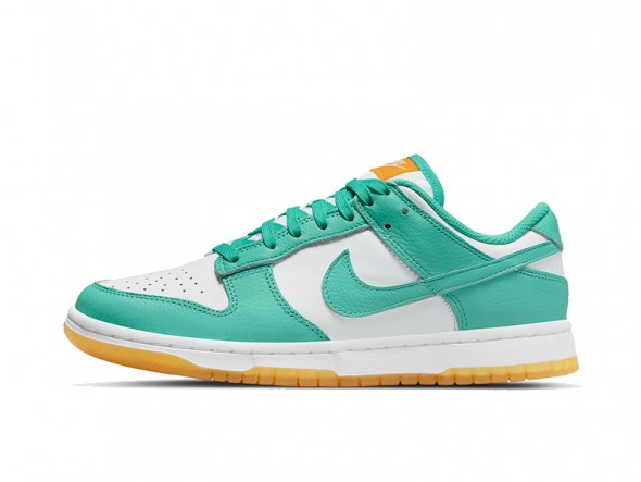 Details: This fake Nike dunk low shoes features a soothing green on the leather overlay, inner lining, and laces, while clean white sits as the base.