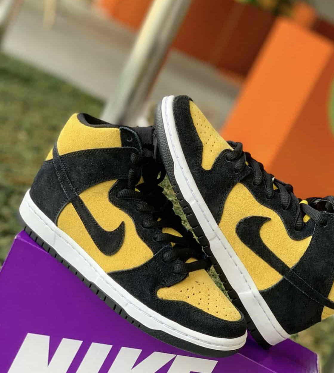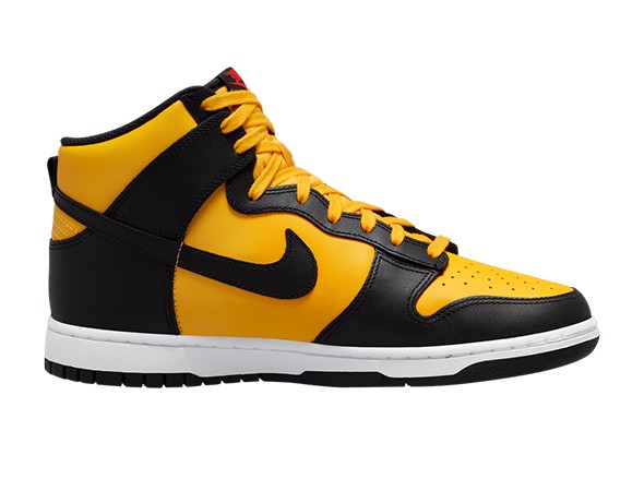 Details: This Dunk High arrives in leather base with a university gold, black, white, and habanero red colorway. This iteration features black Nike Checks on the side, followed by white and black rubber soles. For the finishing touches, bright hues of red appear on the tongue tag and insoles.