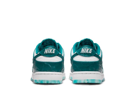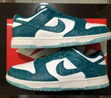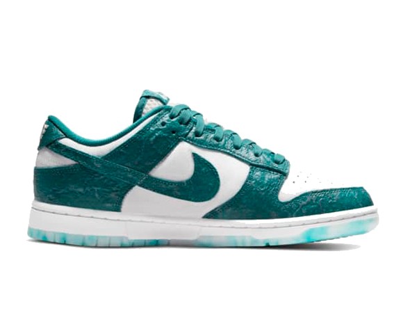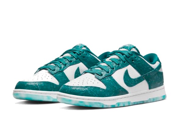 Details: This Fake Nike Dunk Low Ocean is exclusively for women. It boasts a white tumbled leather upper with glossy Deep Blue textured overlays that are representative of the waves in the ocean. At the base, a tonal blue marbled, semi-translucent outsole adds the finishing touch.