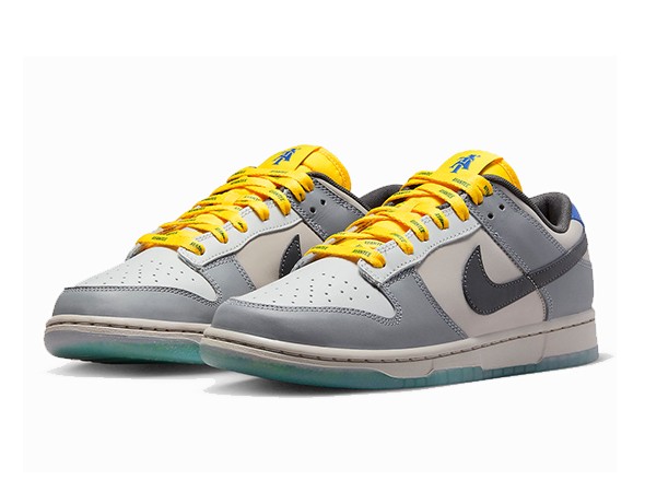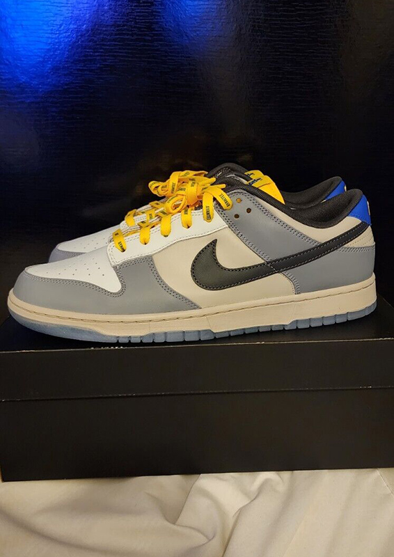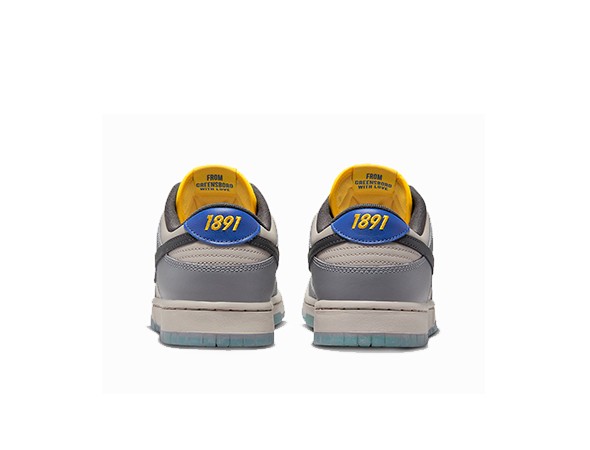 Details: Made from premium leather, this Reps Nike Dunk Low features inconsistent shades of grey for the upper and Swoosh. The laces, tongue and heel feature school gold and blue. The shoelace has the "Ayantee" brand logo, and the number 1891 on the heel of the shoe is the year the university was founded. A translucent rubber outsole brings in the highlights.