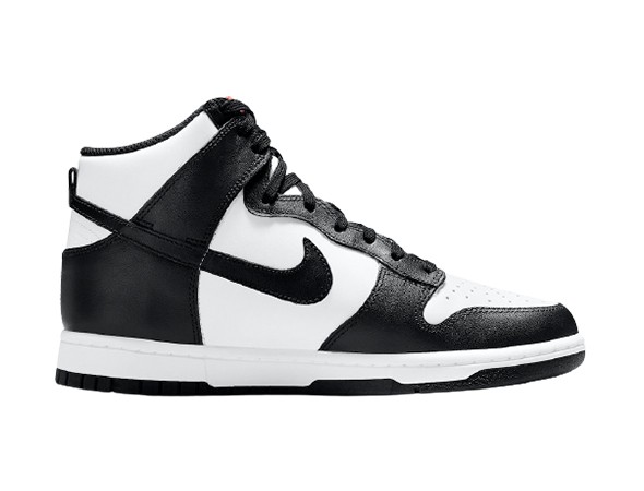 Details: This fake Nike Dunk High "Panda" for women (2021) features a White leather upper with Black Swooshes, overlays, laces, lining, and rubber outsole.