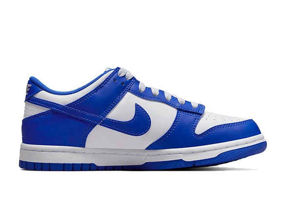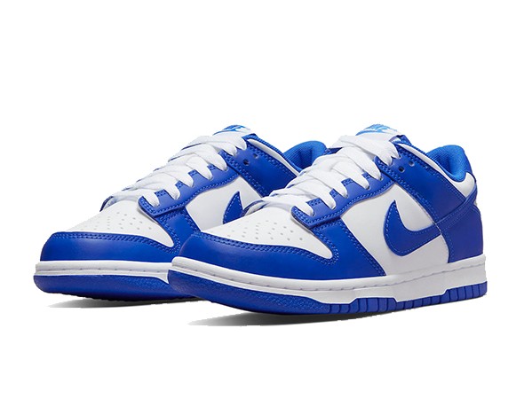 Details: This fake Nike dunk low shoes features a White leather base with Racer Blue overlays, Swooshes, tongue tags, heel tabs, and rubber outsole.