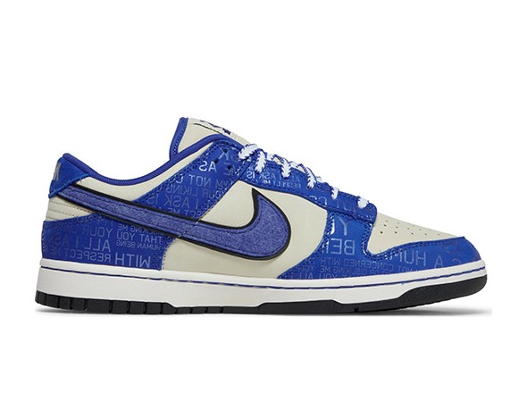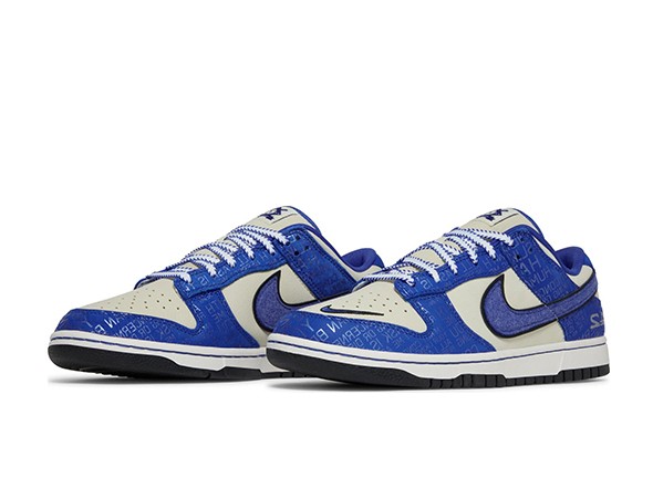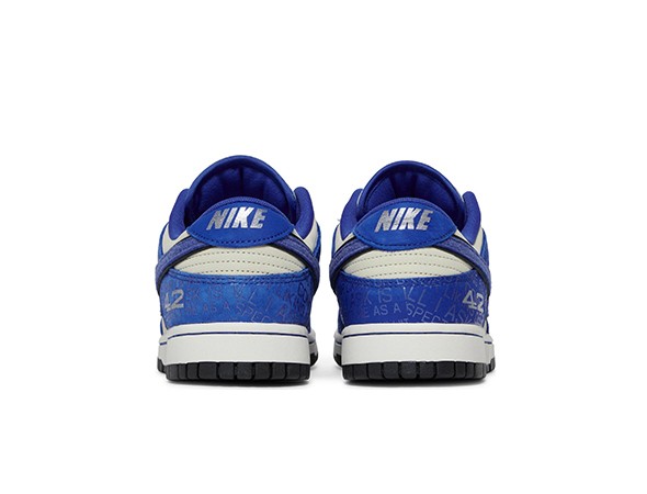 Details: This fake Nike dunk low features special details such as his number #42 on the heels and quote, “I’m not concerned with your liking or disliking me. All I ask is that you respect me as a human being” on the insoles. Other details includes special 75th Anniversary insignia on the tongues, baseball stitched laces atop a White midsole and Black rubber sole.
