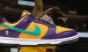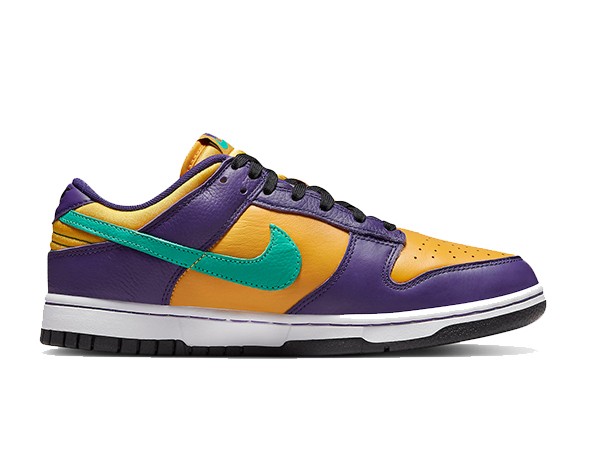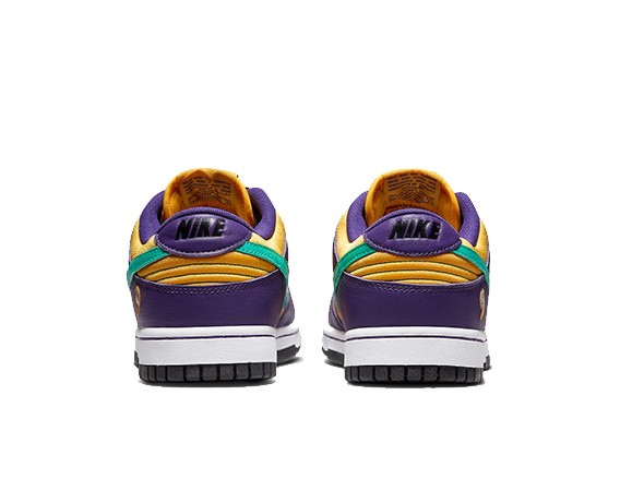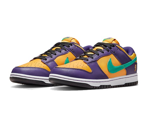 Details: This fake Nike Dunk Low "Lisa Leslie"comes dressed in the Los Angeles Sparks colors of Purple and Gold pairs with a Teal Swooshes, branded tongue tags and heels. Leslie’s number "9" on the heels atop a White midsole and Purple rubber outsole completes the design.
