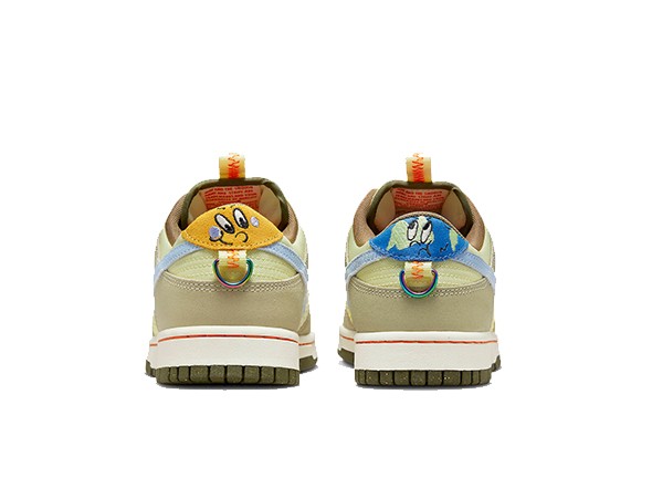 Details: This Fake Nike Dunk Low comes constructed in a mix of materials highlighted with cartoon Sun and Earth motifs on the heels and insoles. A tongue pull tab with iridescent hooks hanging below the heel tabs atop a Grind Rubber outsole completes the design.