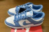 Details: The cheap replica Nike Dunk Low "University Blue" features a White smooth leather upper with a signature perforated toe box and University Blue overlays and Swoosh logos. The Blue color continues on the inner lining, laces, tongue tags, heels, and rubber outsole atop a White midsole to complete the design.