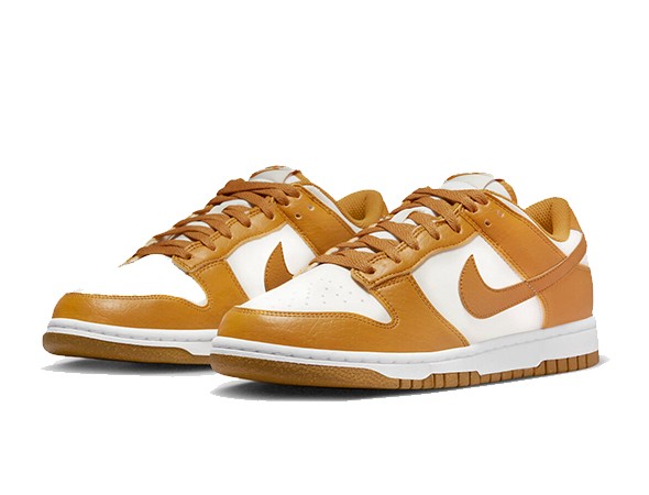 Details: This fake Nike dunk low shoes are dressed in a mix of White and a Golden hue, it comes constructed in a full leather build with the brand’s "Move to Zero" pinwheel logos appearing on the Volt insoles.