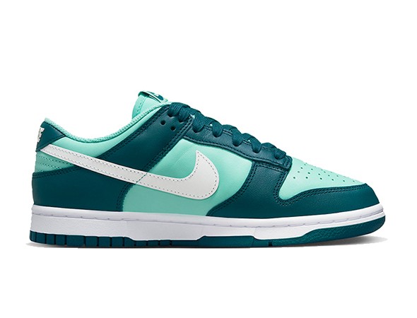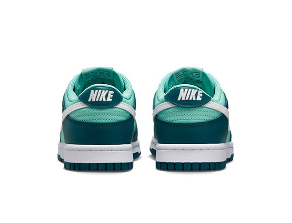 Details: The upper of this Fake Nike Dunk Low "Geode Teal" is covered with leather. A turquoise base is paired with dark teal overlays and white Swooshes. Two-tone sole for great comfort.