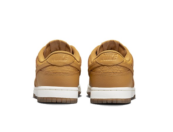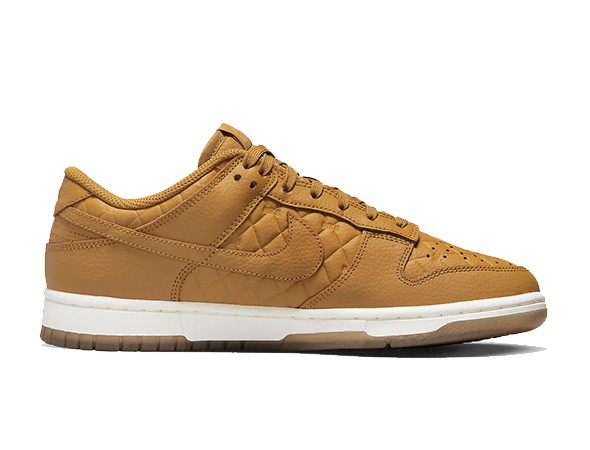 Details: Fake Nike dunk low comes dressed in a Wheat colorway featuring a quilted base with tumbled leather overlays. Other details includes mesh tongues and lining with matching tonal branding throughout. A White midsole atop a Gum translucent outsole completes the design.