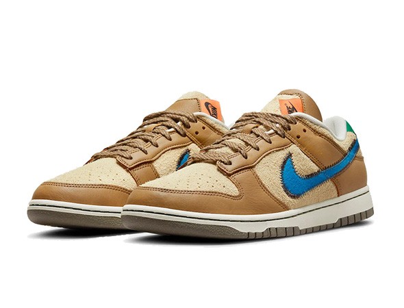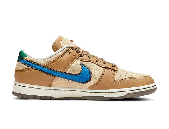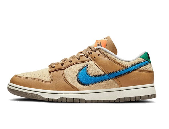 Details: Robust leathers build out the overlays and instep Cooperate with a lighter tan. the tag is outlined with zig-zag stitch and round out the colorway with bright hits of blue and green,