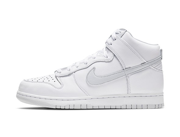 Details: This fake Nike Dunk High SP "Pure Platinum" features a White smooth leather upper paired with matching laces and midsole. Platinum Grey Swooshes, insoles and rubber outsole completes the design.