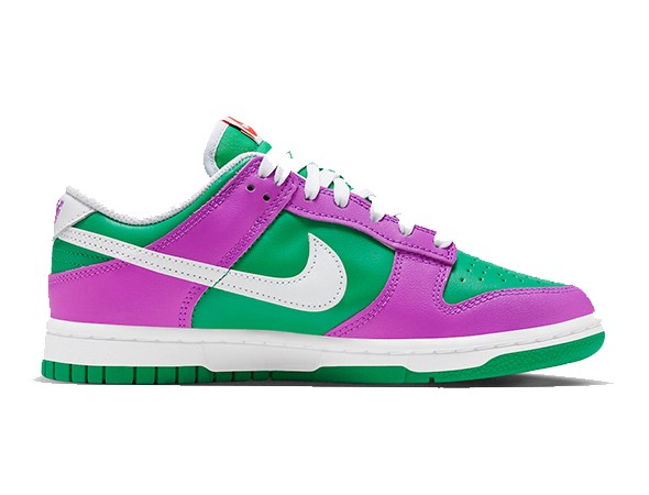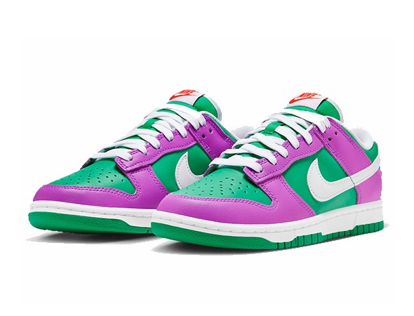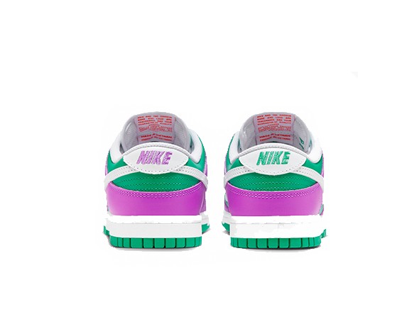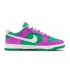 Details: Fake Nike Dunk Low "Stadium Green Fuchsia" is a low-top sneaker. The upper is mainly made of a green base and fuchsia overlay, with white Swooshes embellished. It uses leather material. And this shoe also features a white midsole and green rubber outsole.