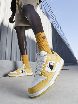 Details: This fake Nike dunk low shoes constructed in a “Nike Sun Club” tongue tags, a shark fin Swooshes, Volt insoles with the brand’s pinwheel logo atop a Grind Rubber sole.