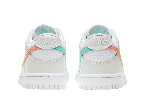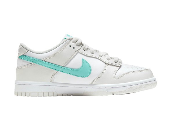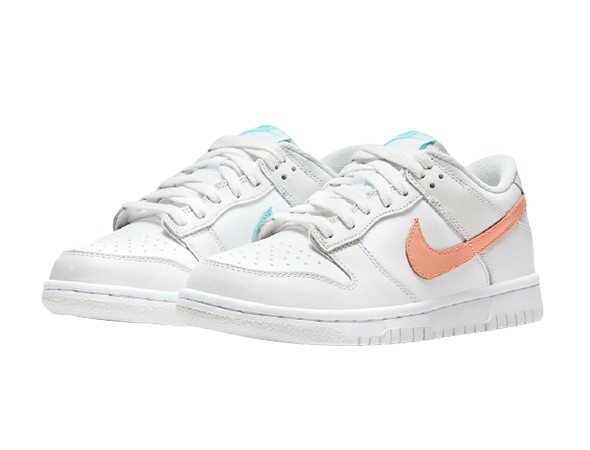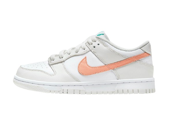 Details: This offering of the fake Nike Dunk Low GS "Tropical Twist" features a White leather upper, perforations at the toe box paired with Light Grey leather overlays.