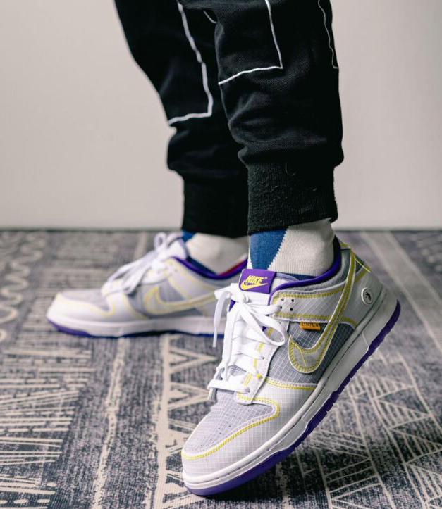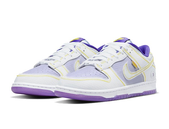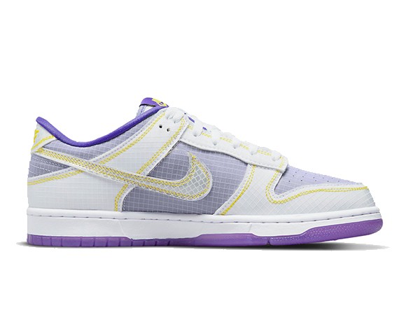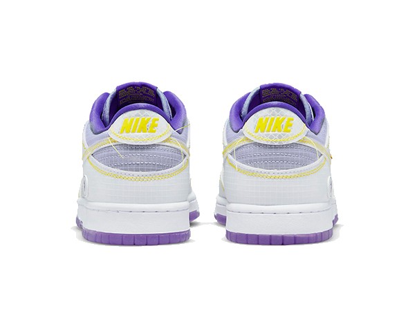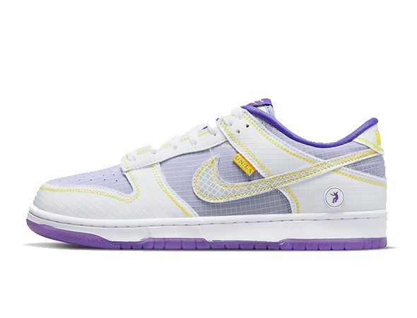Details: This Nike Dunk features a tearable ripstop nylon, and branded them with the boutique's logos and with its white, purple and yellow color palette.