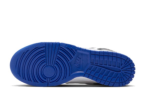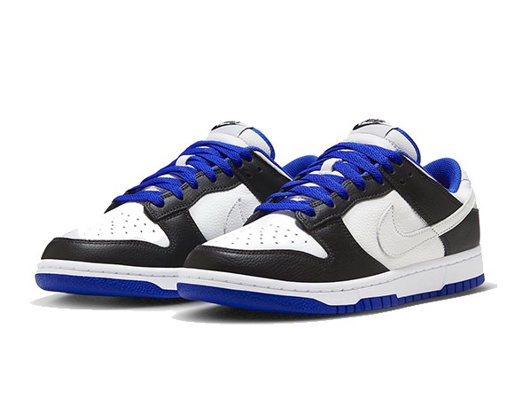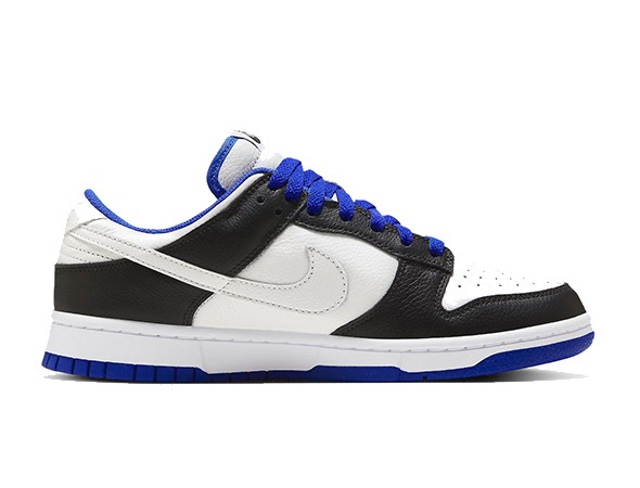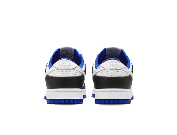 Details: Dressed in a White, Black, and Game Royal color scheme. This Reps Nike Dunk Low features a White tumbled leather base, tongues, and Swooshes with Black overlays. Highlighting the shoe are Royal Blue contrasting accents on the laces, lining, and rubber outsole. A White midsole completes the design.